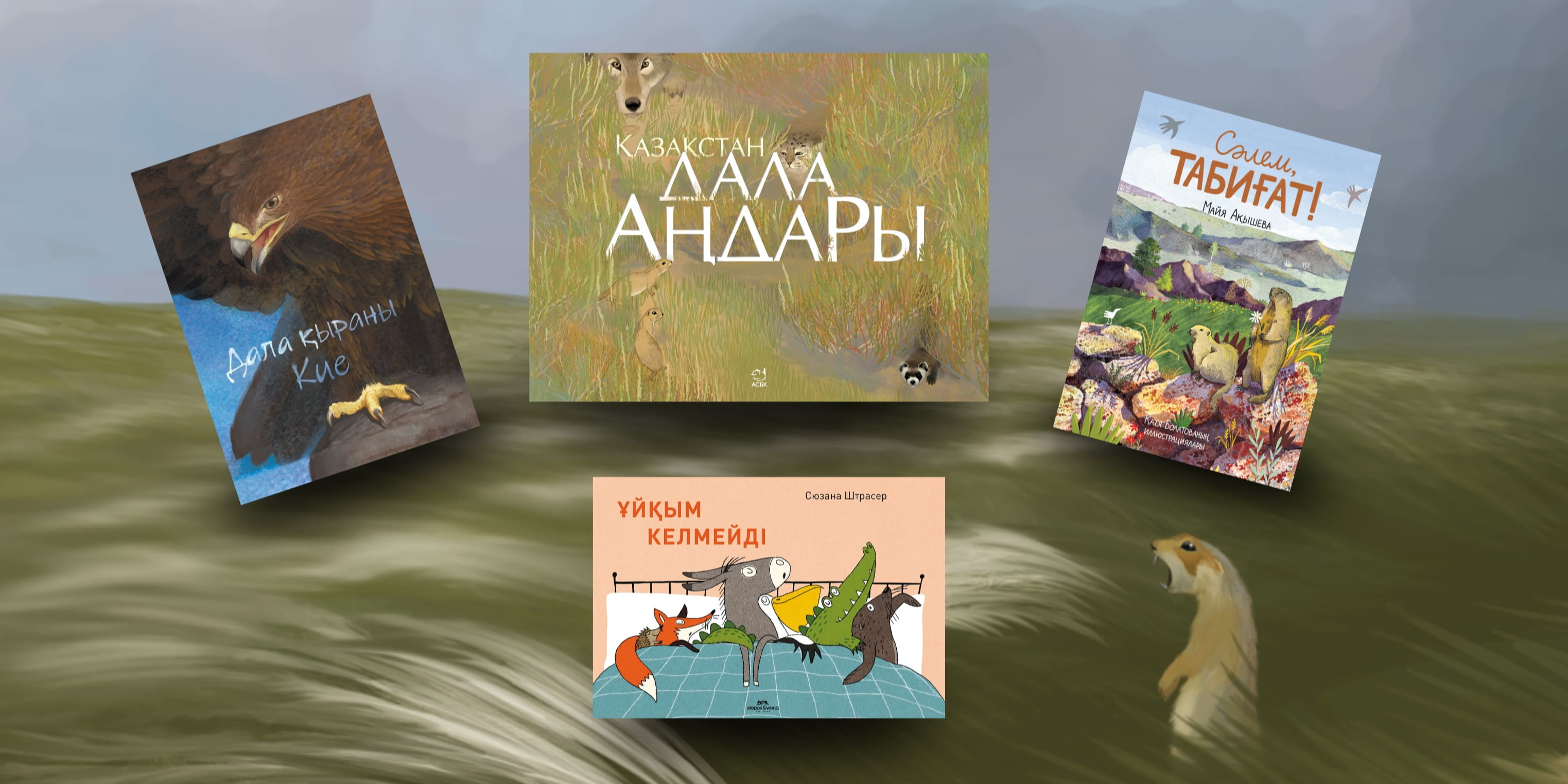 Қазақстанның табиғаты, онда мекендейтін жануарлар туралы суретпен безендірілген қазақша кітаптар